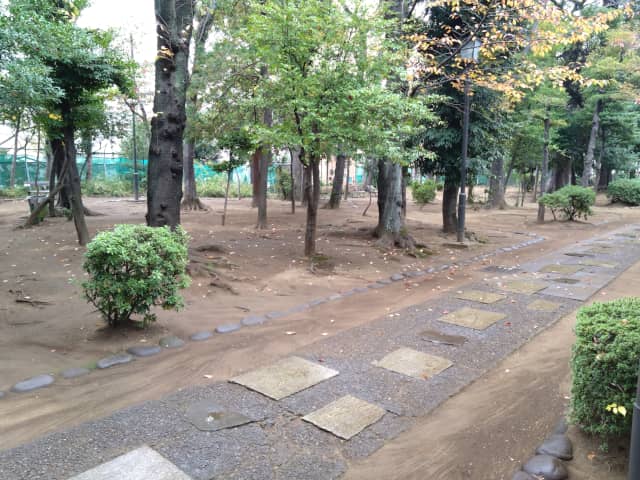 公園内には、クスノキやケヤキなどの樹木が立ち並んでおり、緑の中の散歩をゆっくりと楽しんだりできるほか、子供用の遊具があったり、セミなど昆虫の観察もできるため、家族づれも多い公園です。